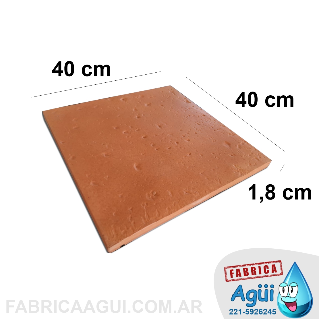 1 baldosa = 40x40x1,80 cm. = 0,16 m2 = 0,0028 m3 = 6 kg