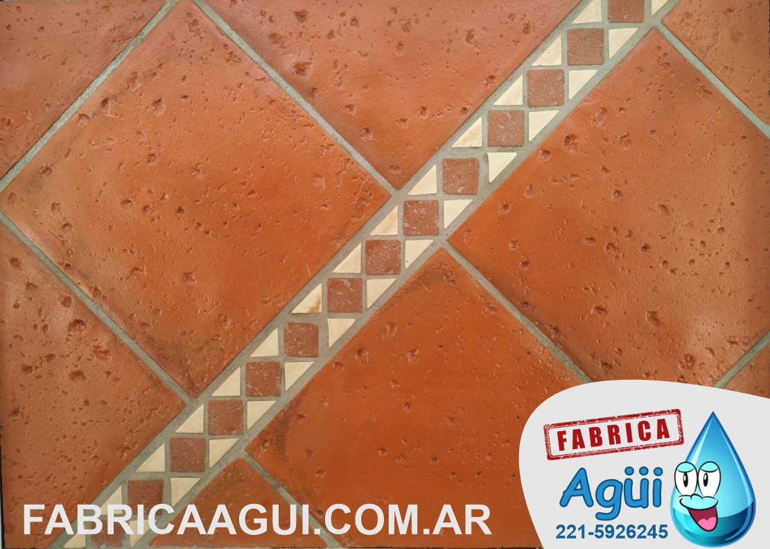Baldosas tipo colonial, color rojo cerámico, terminación rústica. Este piso tiene la característica del envejecido, lo que le da un gran atractivo y confort a sus ambientes.Apto para interiores y exteriores. Producto cementicio monocapa, que integra el color en toda su masa, de textura rústica, antideslizante, de gran resistencia al desgaste.